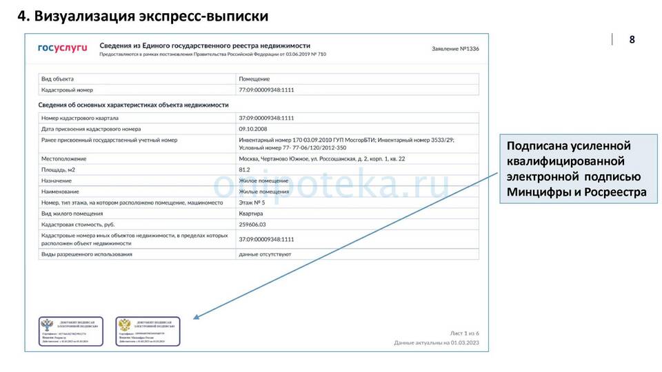 - Электронная выписка заверяется ЭЦП Росреестра