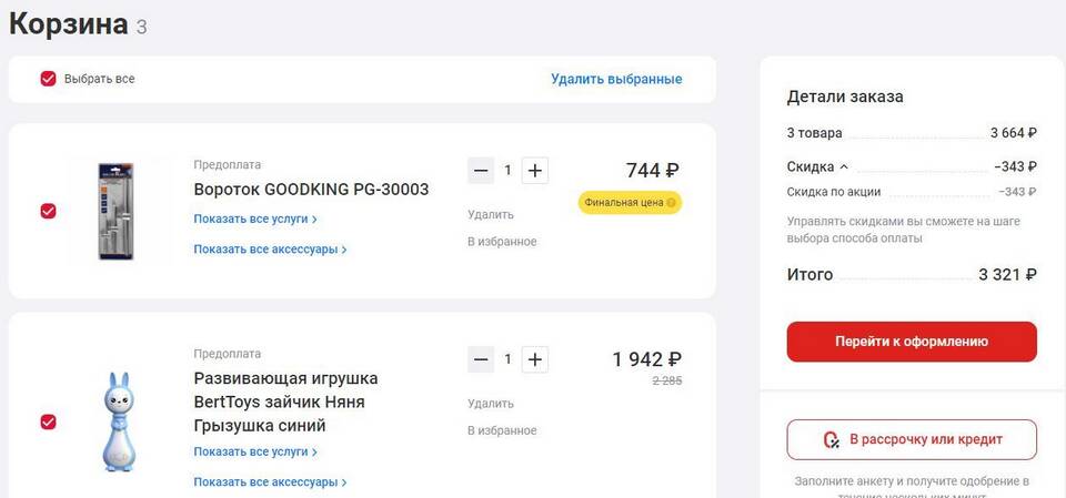 - Добавьте товары в корзину