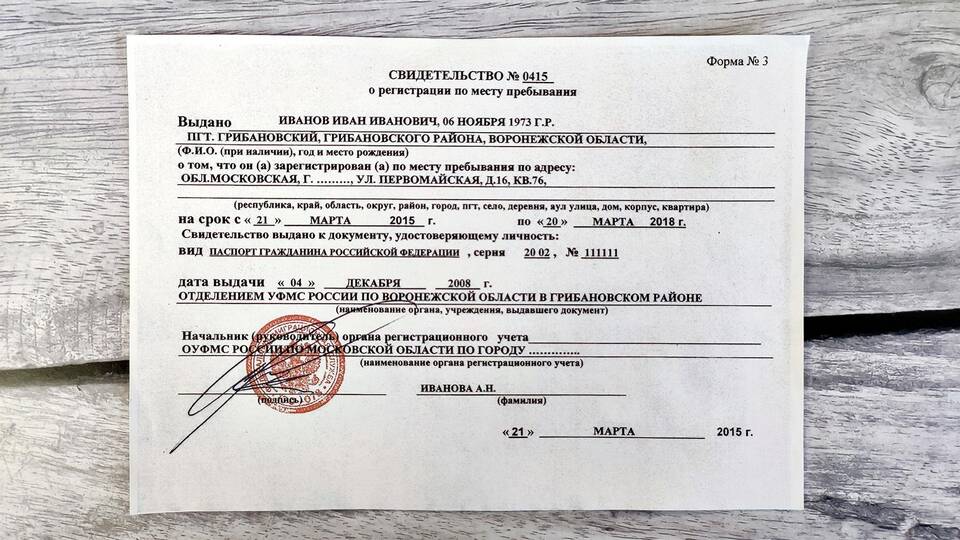 Форма №3 | Временная регистрация | На срок регистрации |